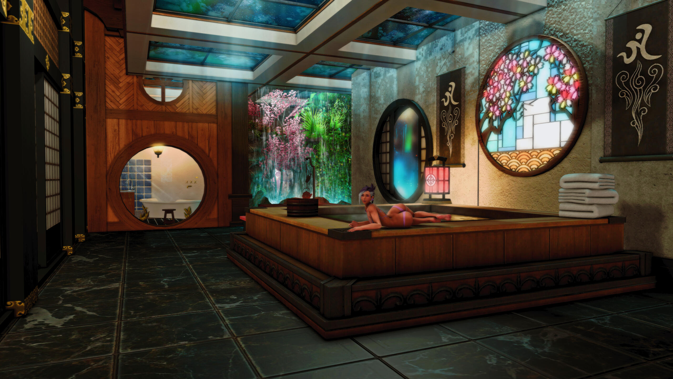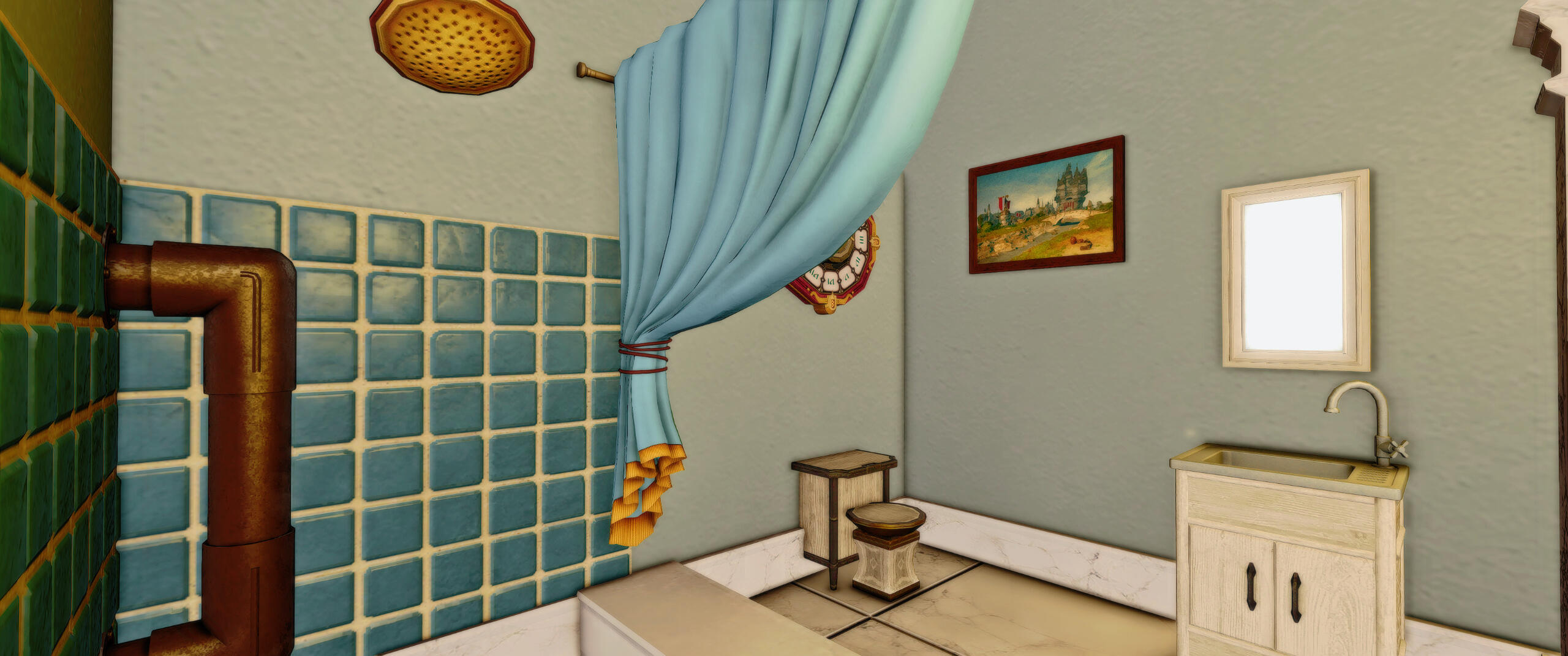Mango's Cute Pastel Apartment. Don't miss the Bath in the back.