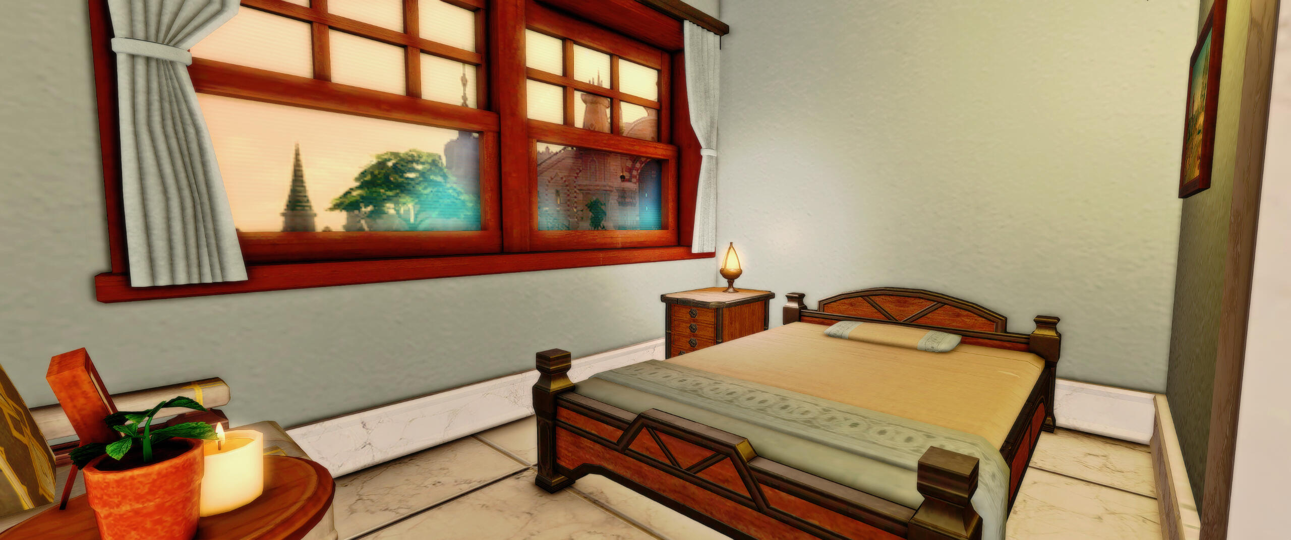 Mist, Ward 14, Plot 40, Room 4. A cool tone bedroom.